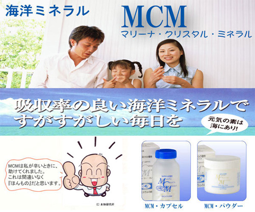 ![]() ■MCM(マリーナ・クリスタル・ミネラル)とは? 『マリーナ・クリスタル・ミネラル』(MCM)は、 清浄な海水を汲み上げ、有害な成分を除去し、 必要なミネラル分を抽出・濃縮・結晶化させたものです。 カ ルシウム・マグネシウム・カリウムなど重要なミネラル分が、 バランス良く含まれています。 MCMはイオン化されている海洋ミネラル成分なので、 カラダに吸 収されやすく、わずかな量の摂取で 不足がちなミネラルを補うことができます。 1963年、南極越冬隊が持ち込んだ新鉱物 「南極石」から研究がはじまり、分析の結果、 そのミネラル組成は人間の体液に酷似しており、 人体に必要なミネラルと海洋成分がバランス良く配合されていました。 その南極石をモデルとして作られたのが、MCMです。 イオン化されている海洋ミネラル成分を、 結晶化することでカラダに吸収されやすく、 わずかな量の摂取で不足しがちなミネラルを補うことができます。 ![]() MCMパウダーは、なめてみるとちょっとほろ苦い味がしました。 自然の素材から作られている確かな品質なので安心してお召し上がりいただけます。 僕は、カプセルタイプの方が好みです。 飲みやすいですし、携帯するのにも便利です。 水にもサッと解けて、吸収されやすいミネラルなので、 お味噌汁などに入れたりご飯を炊く時に入れてミネラル補給も出来ます。 毎日の元気をサポートする良い商品だなと思います。 ■お客様の声 マリーナクリスタルミネラル(MCM)を食べて 仕事を持つ主婦というのは、どう頑張っても充分な睡眠を取るのは難しいものです。 毎晩、11時に眠りに就くのが長年のかなわぬ夢ですが、 布団に入るのは、やはり1時を回ってしまいます。 その上極端な低血圧のため、動き出してからも血液が行き渡らない ボーッとした頭のまま、午前中は仕事も思うように捗りませんでした。 そんな辛い日々に耐えることに、そろそろ限界を感じ始めた頃、 このMCMに出合ったのでした。 まず、頭のもやもやした不快感が消えます。 肩の張りもとれた かのよう。その上、お昼休みに鏡を見てまたびっくり。 化粧崩れがほとんどなかったのです。 海から採れたミネラルの素晴らしさを発見するとともに、健康と美容の緊密な関係を、 あらためて思い知りました。 MCMは、働く女性のまさに救いの神です。 服部 みき子さん44歳(東京都) ミニ・ミネラルチェック!!気になる症状はありませんか? ●なにかとすぐ疲れる ●エネルギーが不足している感じがする ●カゼをひきやすい ●もの覚えが悪い ●集中力が長く続かない ●落ち着きがなく、些細なことでイライラしやすい ●体がだるく、頭もすっきりしない