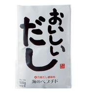 水やお湯にさっと溶すかすだけで、手軽に澄んだおいしいだしがつくれます。味良く風味良く、くせのない自然な喉ごしです。スープストックとしても便利に使え、作り置きして再加熱しても味は変わりません。 ■使い方いろいろ!■ 調味料として料理に直接ふりかけても、溶けやすい超微粉末なので粉っぽくなりません。和・洋・中、どんな料理も簡単においしく仕上げ、素材の味を引き立て ます。その他、炊き込みご飯、野菜炒め、焼きそば、カレー、ドレッシング、だし巻き卵など、和洋中問わずお使いいただけます。また、スポーツ時の栄養補給 ドリンクとしてもお飲みいただけます。 ~水から入れる~ 煮物と炊き込みご飯は少し多めに入れます。 ・味噌汁 ・すまし汁 ・煮物 ・おでん ・鍋物 ・炊き込みご飯 ~多めに入れる~ おいしいだしを多めに砂糖少々、みりん、 醤油を加えます。 ・めんつゆ ~振り入れる~ 炒めながら途中で振り入れます。 ・野菜炒め ・焼きそば ・焼きうどん ・チャーハン ・パスタ ~途中で入れる~ ・カレー ・シチュー ~直接混ぜる~ ・合わせ酢 ・ドレッシング ・お好み焼き ・チジミ ~溶かして入れる~ 少しのお湯で溶かしたものを卵に入れます。 ・だし巻卵 ・茶碗蒸し ・オムレツ ※「おいしいだし」には塩が加えられていないので 塩加減は適宜調味して下さい。